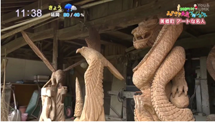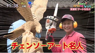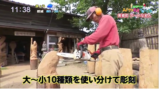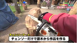 チェンソーアートは、チェンソーだけで丸太を削って作品を作ります。