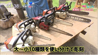 10種類のチェンソーを使い分けて、大きい部分から小さい部分まで丁寧に彫り上げます。