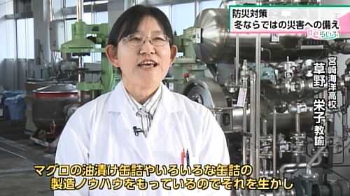 味付けは、主婦層をターゲットにしているので、料理の材料にしやすいように塩分濃度を薄くした缶詰を作りました。 - 今企業で備蓄をしてもらっているが、今後は、家庭でも備蓄してもらいたい。