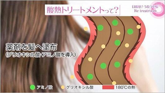 タンパク質でできている髪の結合を、薬剤の力で一時的に強い力で結合を作り、ヘアアイロンなどの熱で髪質をコントロールするヘアケア方法です。