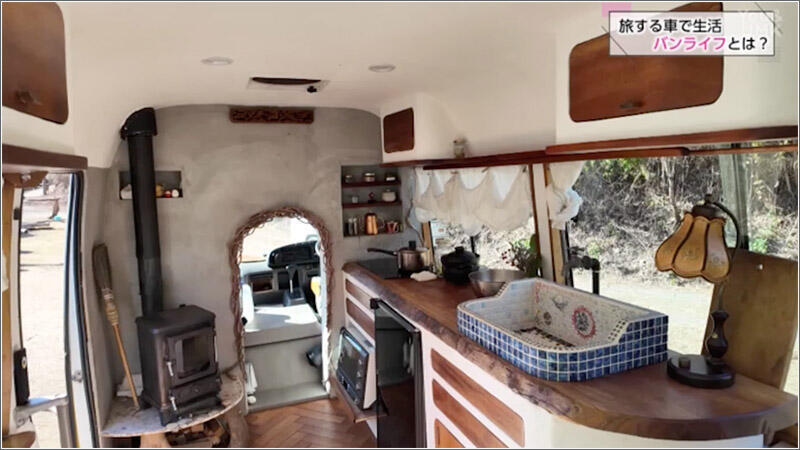 ベッドやキッチン、生活用品を備えた"動く家"で暮らしながら旅を続ける「バンライフ」を実践しています。