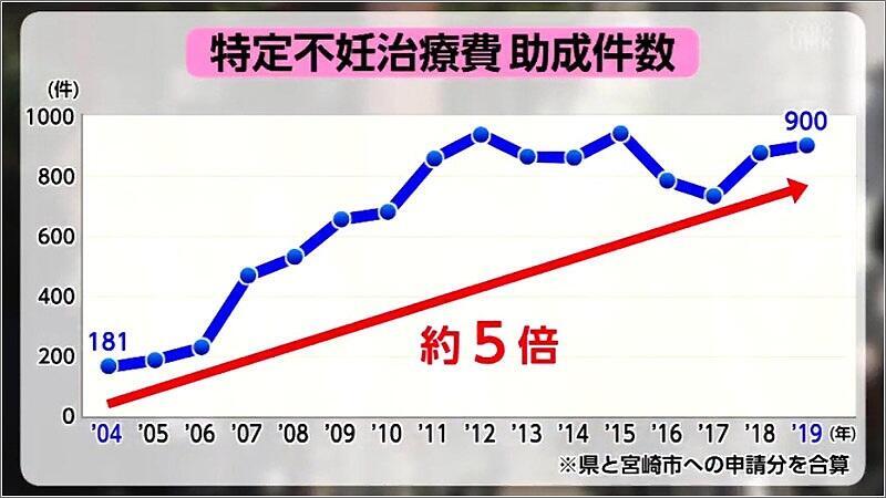 県内の特定不妊治療費の助成制度の申請件数は、15年間でおよそ5倍(2019年は900件)。