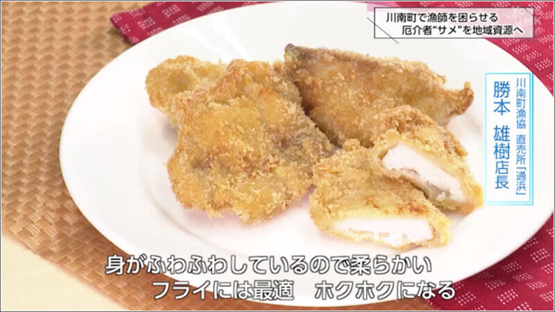 レシピ開発を担った、川南漁港直売所「通浜」の勝本雄樹店長は「サメは軟骨魚類で骨が少なく、身はさばきやすい」と話します。