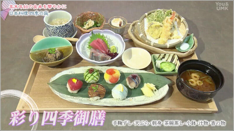 宮崎の旬の食材を使った「彩り四季御前」や、約10種類の天ぷらが味わえる「天丼」、子育て世代に嬉しい「お子様竹籠御膳」など、季節と心配りが感じられる料理が魅力です。