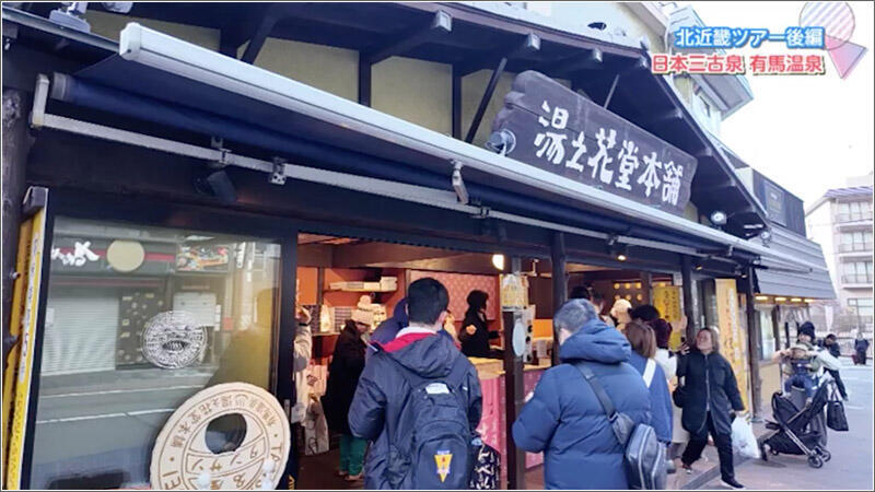 有馬温泉の炭酸泉を使用した焼き立てのせんべい、 有馬名物「なま炭酸せんべい」(湯之花堂本舗)を味わったり、老舗土産店「吉高屋」で有馬温泉関連グッズを選んだりと、思い思いの時間を楽しみました。