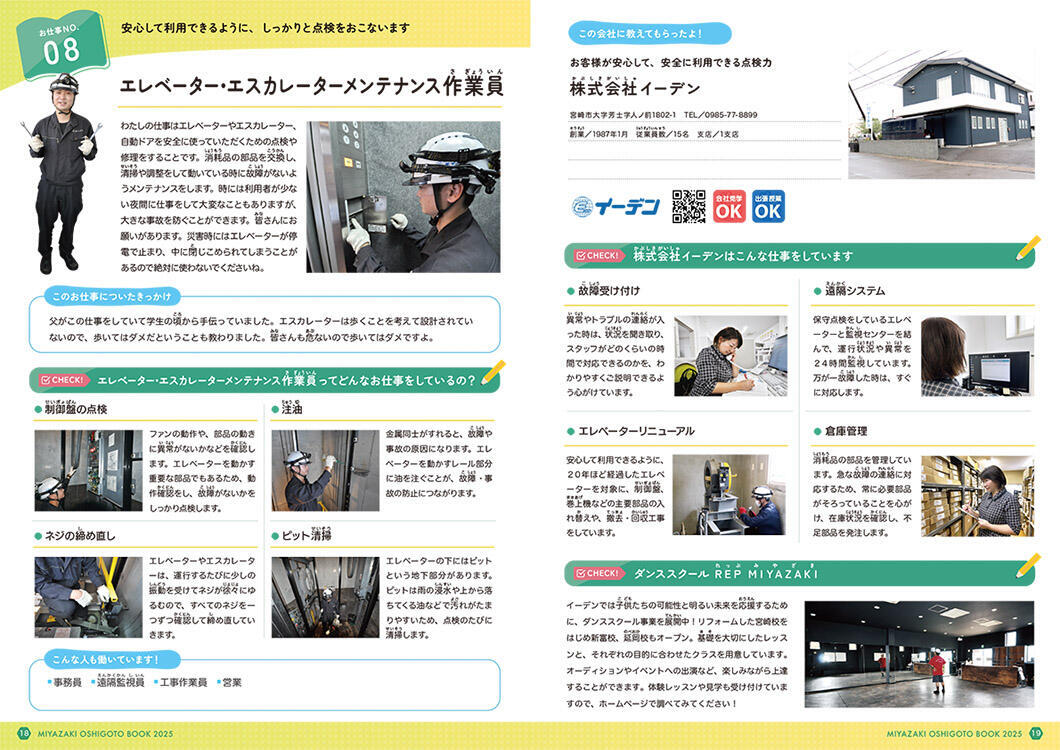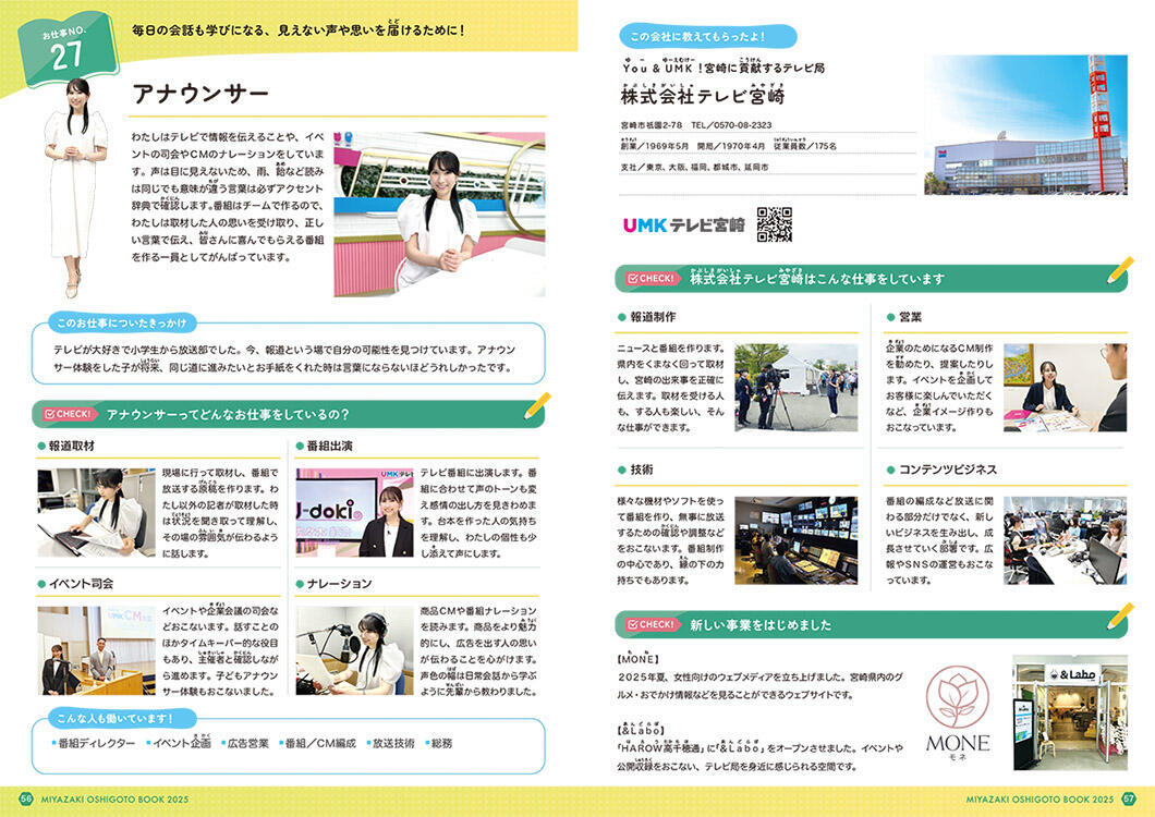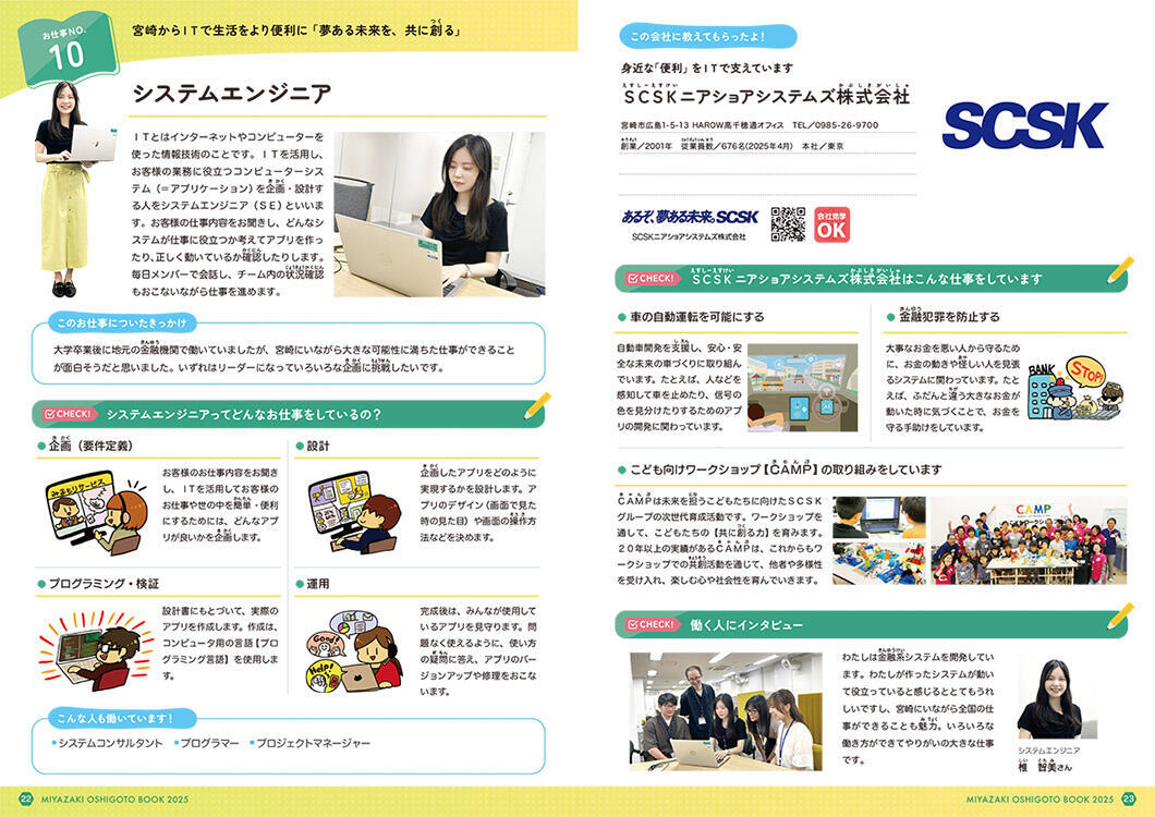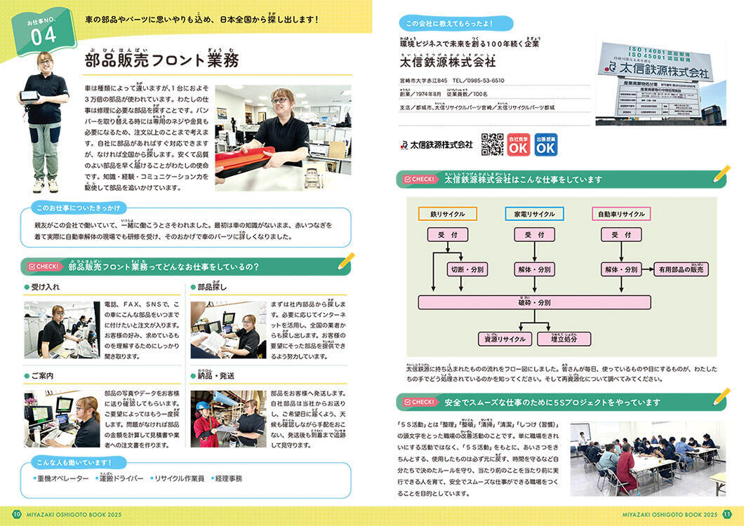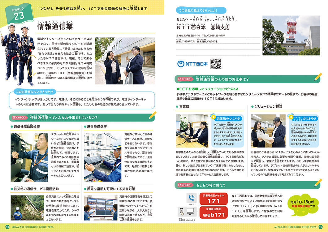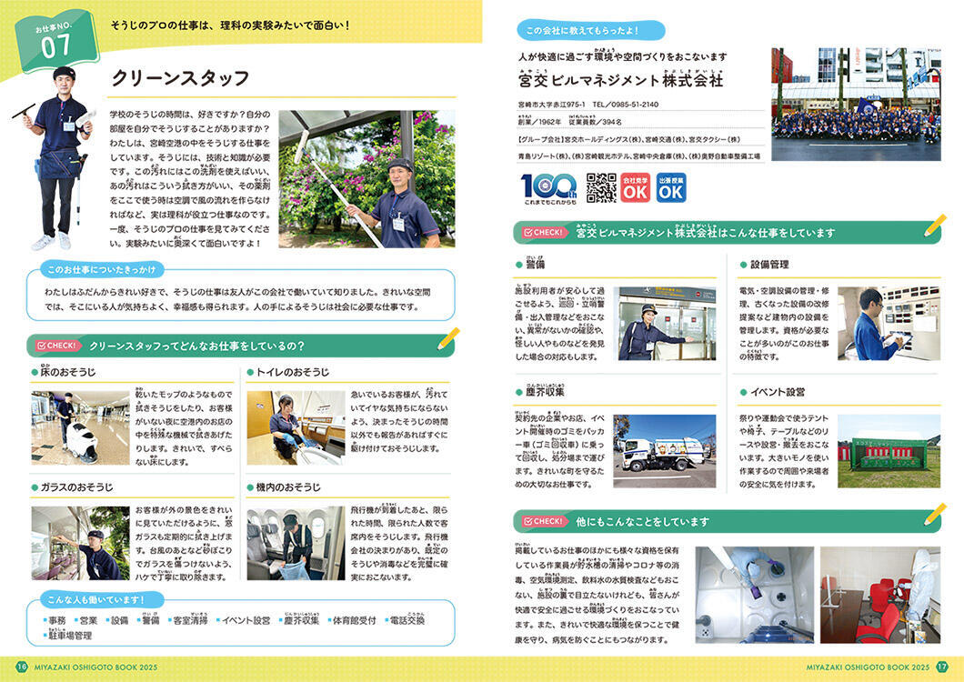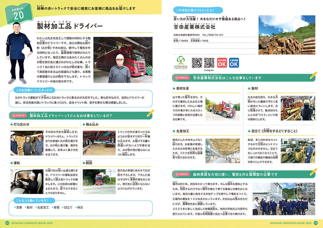 この事業では、地域の未来の担い手である子供たちに向け、県内企業で活躍している様々な業種にクローズアップした「宮崎県のおしごと本」を小学5年生の副教本として配布しています。